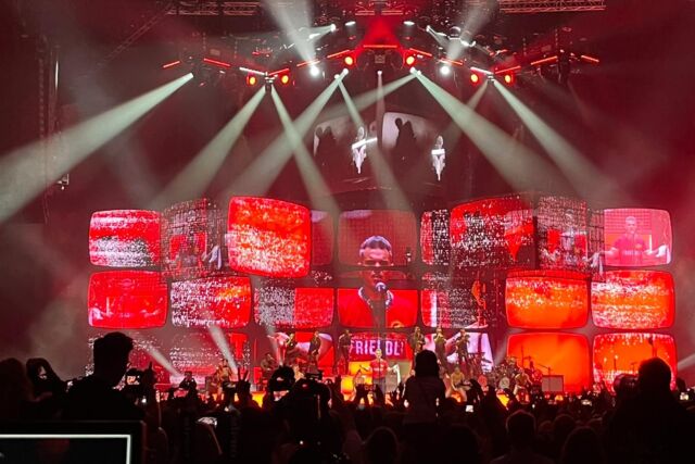 “Am oberen Bühnenrand setzten wir eine 25 Meter breite Videowand von Leyard Europe ein und sorgten für klare Sichtlinien. Im Gegensatz zu einer herkömmlichen IMAG-Leinwand konnten so der Künstler und die Band visuell besser in den Bildschirminhalt integriert werden.”