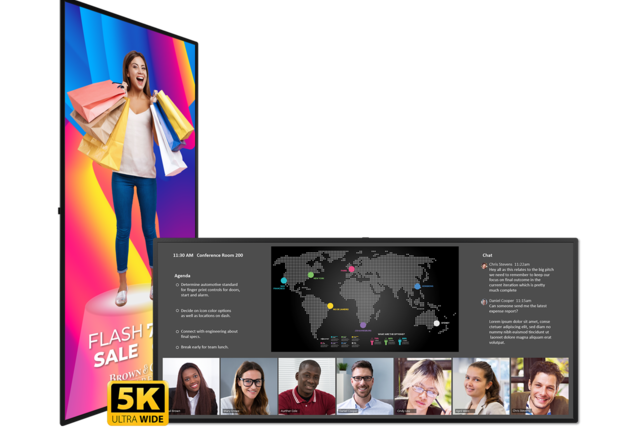 The Planar® UltraRes™ W Series ultra-wide format LCD display is ideally sized for the most popular unified communications and video collaboration platforms, such as Microsoft Teams®, with its Front Row layout. Its 5K resolution and 21:9 aspect ratio are ideal for native cinematic video playback. Its commercial-grade construction provides 24x7 reliability, and remote monitoring simplifies email alerts in case of an unexpected event. View two sources simultaneously with dual layout or Picture-in-Picture. A multi-point projected capacitive touch model is available, as well as Planar® ERO-LCD™ (Extended Ruggedness and Optics™) protective glass. Displays are TAA compliant.