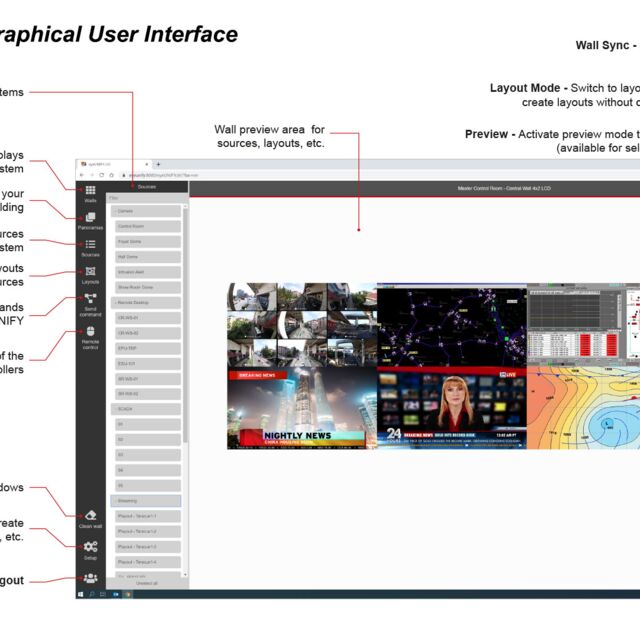 eyevis™ eyeUNIFY Video Wall Software answers the flexible requirements of modern video walls and information display systems in control rooms, collaboration rooms, board rooms, crisis rooms and corporate signage applications. The software’s modular, web-based concept allows for operation across platforms, different operating systems and a freely scalable number of clients.
