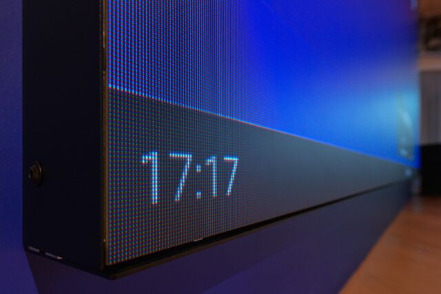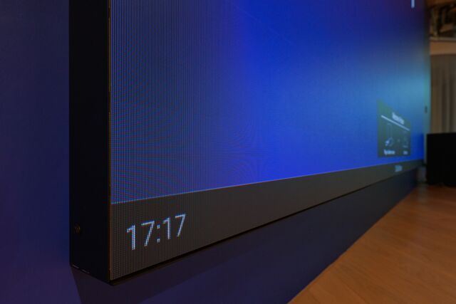 El corazón de la instalación, fruto de la colaboración con el proveedor de tecnología AV Media, con sede en Praga, es una impresionante pantalla de vídeo LED de 3,6 x 2 metros. Está compuesta por 36 paneles LED individuales. Con una distancia precisa entre píxeles de 1,8 mm, la pantalla de vídeo ofrece una resolución Full HD y puede mostrar varias fuentes de entrada al mismo tiempo. Esto la hace ideal para todo, desde presentaciones corporativas hasta mensajes de bienvenida para los invitados.