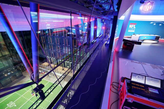 Il progetto dello studio NFL comprende un'area aperta e accessibile a 360 gradi, con quattro LEDwall centrali. Quattro persone della troupe in onda, tra cui commentatori, esperti, ospiti della comunità e presentatori, guideranno le trasmissioni su RTL e NITRO dallo studio. Il fulcro dello studio è costituito da un grande videowall curvo di 11,5 m di lunghezza e 2,7 m di altezza, composto da 38 pannelli LED da 4 Leyard AT da 1,5 mm, che viene utilizzato dal commentatore per fornire classificazioni e analisi aggiornate delle partite insieme agli esperti.